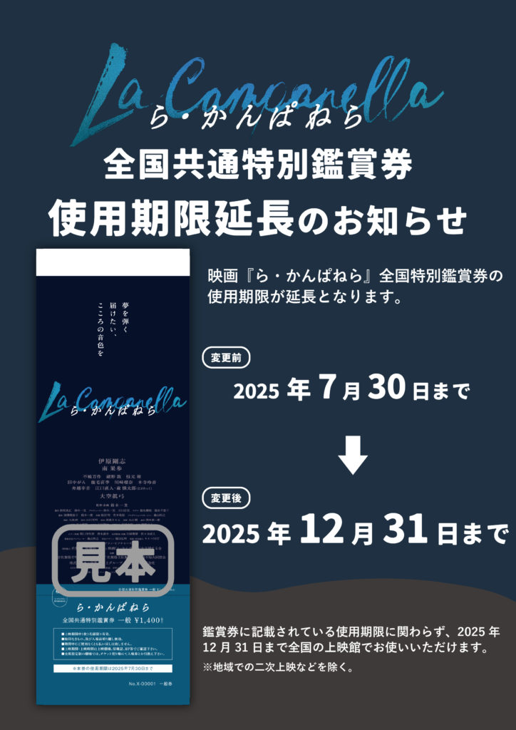 映画『ら・かんぱねら』全国特別鑑賞券の使用期限が延長となります。